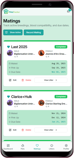 PetzTracker has become an essential part of how I manage my breeding program. Its clarity, functionality and comprehensive record management make it far more than just a simple tracker app - it’s a breeder’s digital partner.